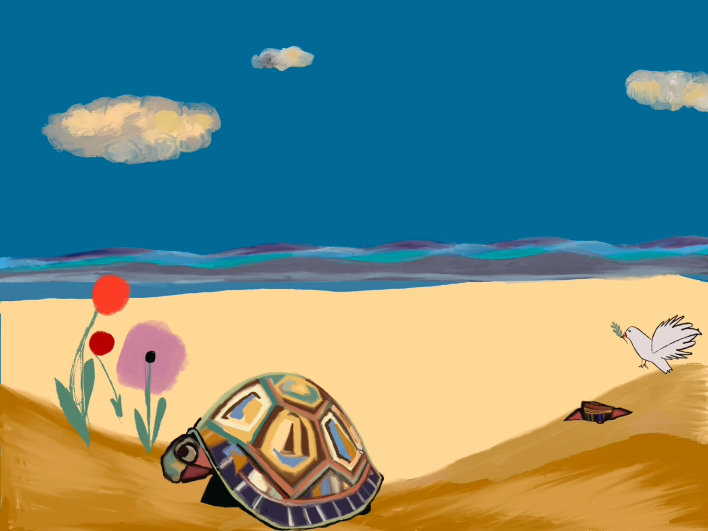 Synopsis: On the verge of sleep, two young sisters find themselves facing the fear of war. Imaginary characters come to their aid: a turtle, a spiky hedgehog, a missile, and a tooth fairy that doesn’t really exist. Their mother does everything in her power to stop their loss of innocence but discovers that the task is more difficult than she imagined.